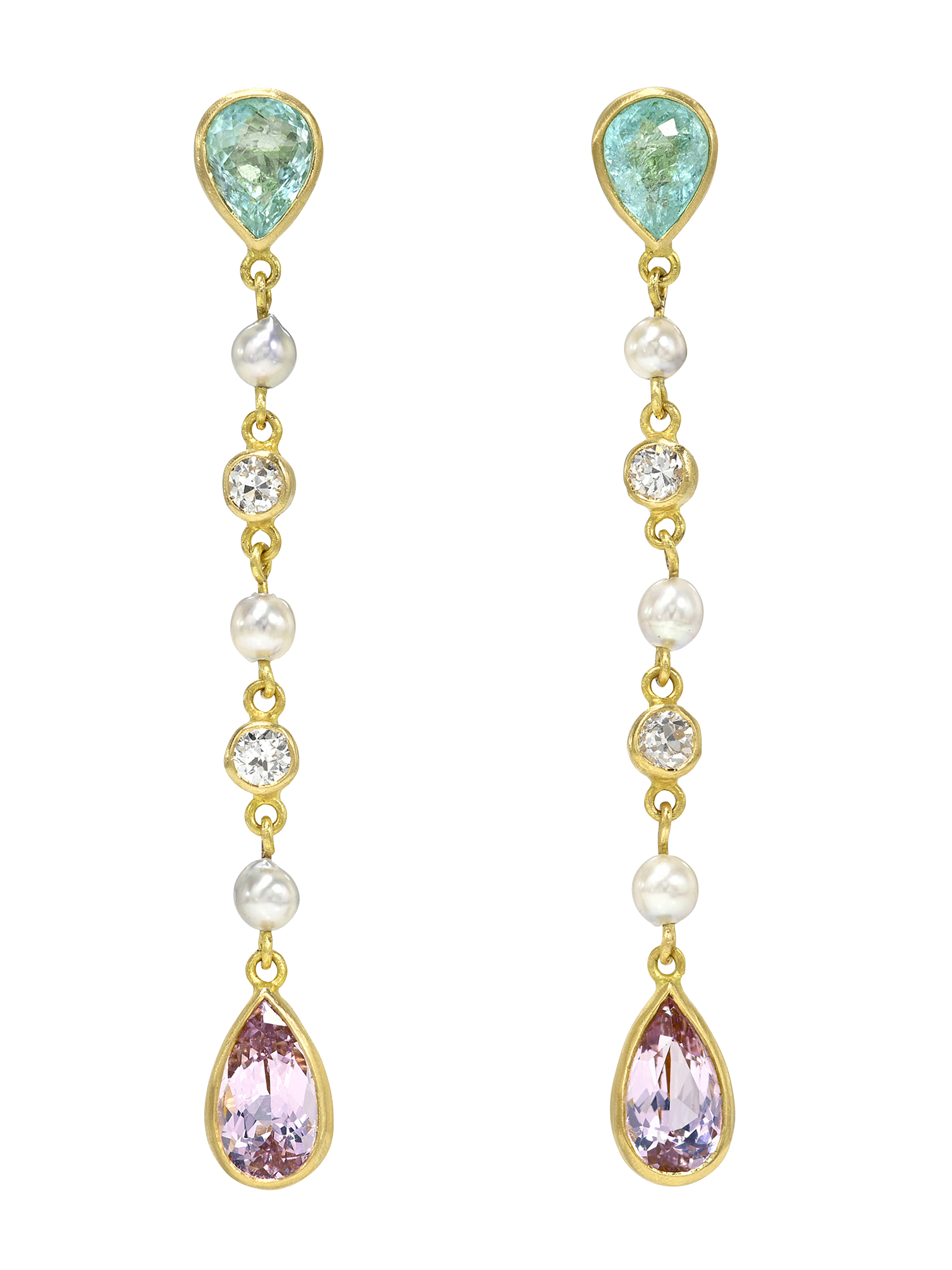 Collection IV, Cascade Earrings, Paraiba Tourmaline, Diamond and Spinel