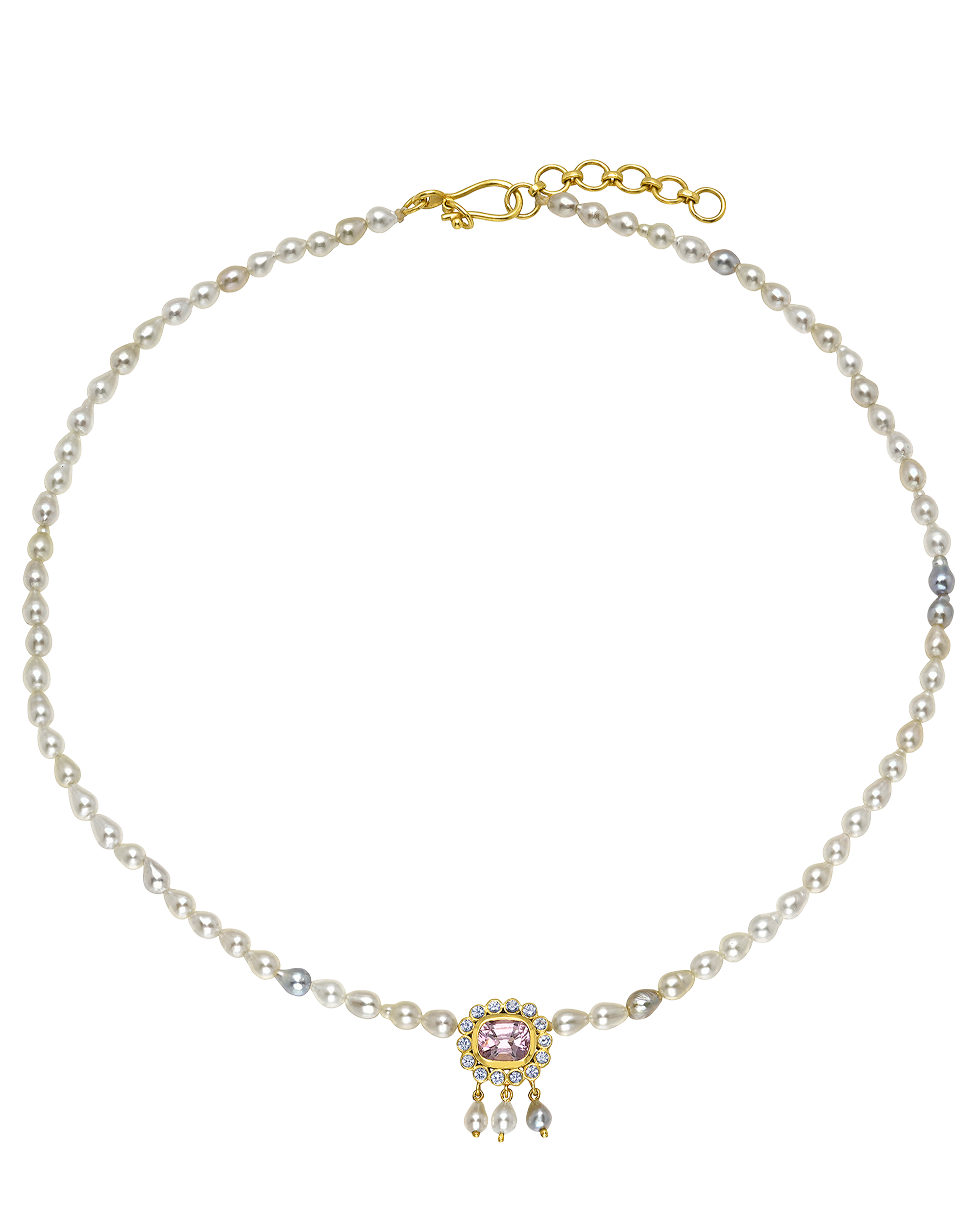 Collection IV, Rani Rosette Collar, Spinel and Akoya Pearl.