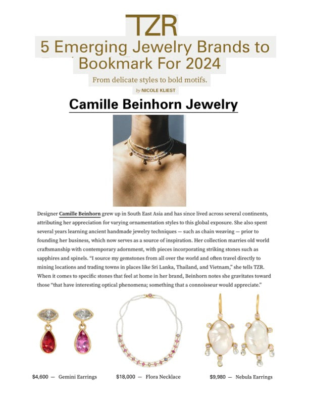 Featured item, Gemini Earrings; Flora Necklace; Nebula Earrings.